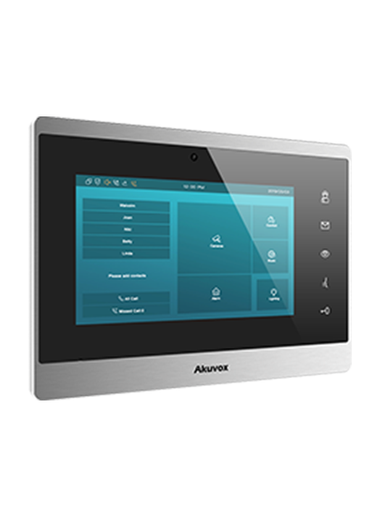 Akuvox IT82 — 7" внутренний Android-монитор с пятью программируемыми сенсорными кнопками для индивидуальных сценариев. Подходит для использования в современных средне- и высококлассных жилых объектах.