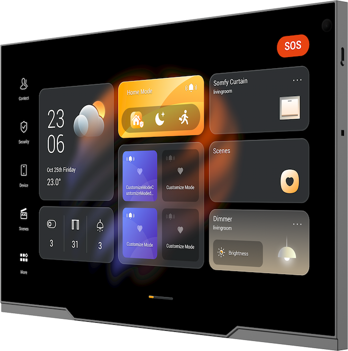 1.Сенсорный экран 12,35 дюйма с металлической рамкой 2.2.5K (2560×1600) UHD-дисплей 3.Встроенные: 6 сухих контактов, 8 цифровых входов, порт RS485 4.Поддержка нескольких сетей: Wi-Fi 6, Bluetooth 5.0, ZigBee 3.0 и др. 5.Встроенные датчики 6.Операционная система Android 12 7.Домофон, шлюз ZigBee и панель управления умным домом в одном устройстве 8.Совместимость с различными сторонними устройствами и платформами 9.Камера на 5 мегапикселей с шторкой конфиденциальности